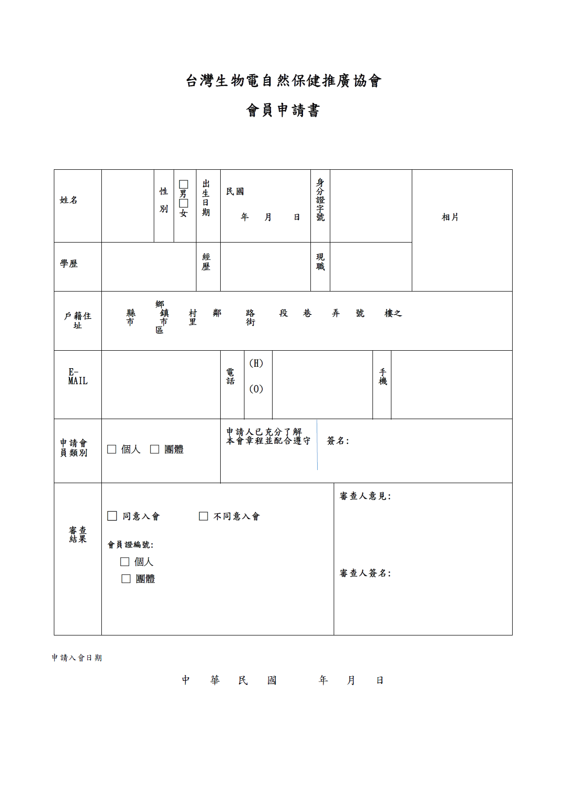 (4)請將填具的申請表及所需證件文件,郵寄至協會辦公會址「台北市信義區信義路五段5號6B05室」,信封註明台灣生物電自然保健推廣協會入會申請 (收件人:許先生)。