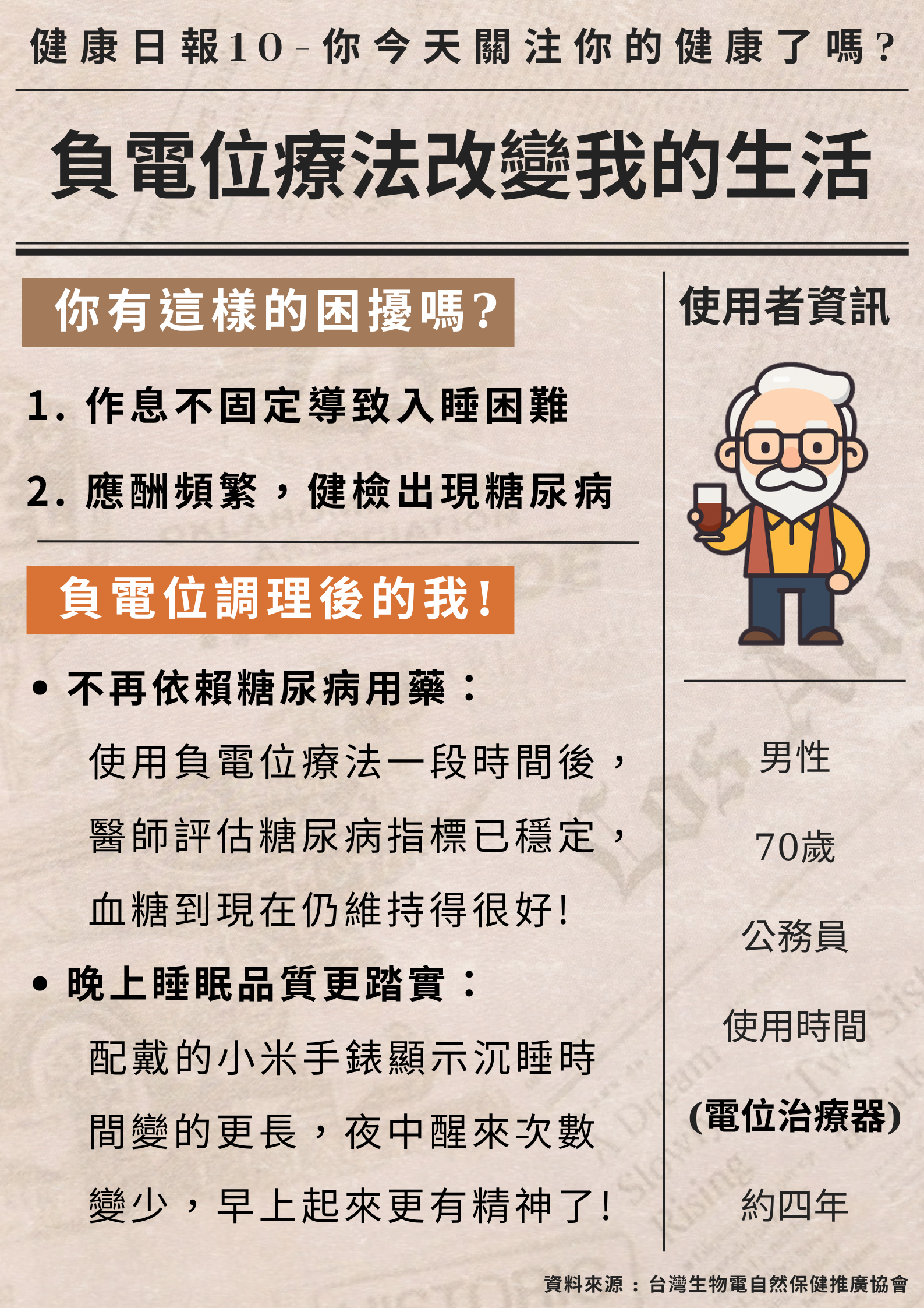 男性 70歲 公務員,接觸電位療法時間5年